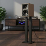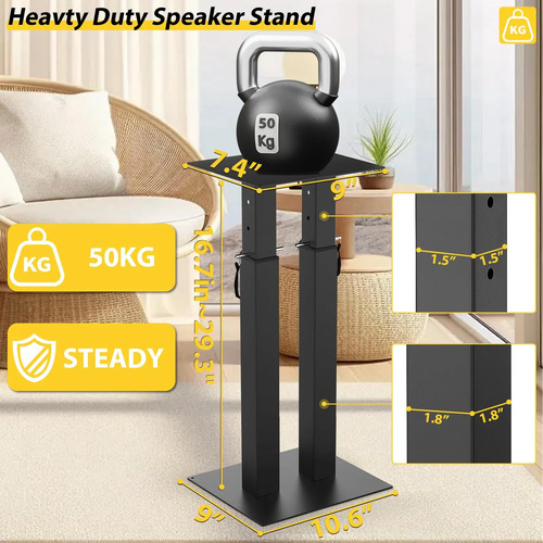 Compatibilidad universal: este resistente soporte de altavoz negro es compatible con la mayoría de altavoces que pesan hasta 100 libras, asegurando una configuración segura y estable para una amplia gama de equipos de audio