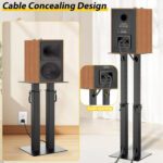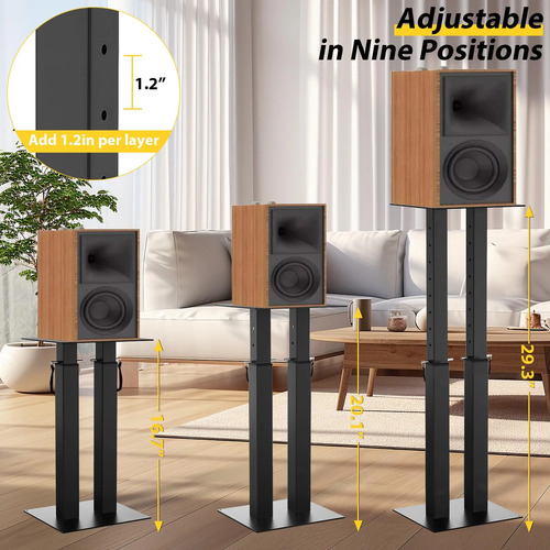 Ajuste de altura de 9 posiciones: Equipado con tubos extensibles, este soporte para altavoz ofrece 9 ajustes de altura ajustables, que van desde 42 cm hasta 29.5 pulgadas. Esta flexibilidad garantiza que pueda alcanzar la altura de escucha perfecta para una experiencia de audio inmersiva. Ideal para mejorar tu sistema de cine en casa o entretenimiento, estos soportes elevarán la calidad de tu sistema de sonido