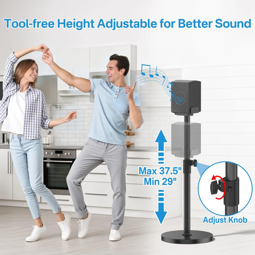 Ajuste de altura sin herramientas: el tubo extensible de estos soportes para altavoces envolventes Samsung se ajusta de 29 a 37.5. Con un pomo fácil de usar, puedes cambiar la altura sin necesidad de herramientas. Ajustar los soportes a la altura óptima del nivel de oído no solo garantiza una mejor claridad de sonido, sino que también reduce los reflejos para una experiencia auditiva mejorada.