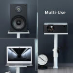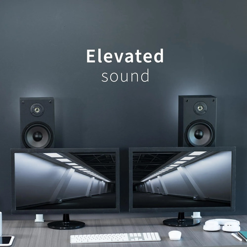 Plataformas de altavoces universales: estas plataformas resistentes de 9.5 x 8.8 se adaptan a la mayoría de configuraciones de altavoces y sonido envolvente. El acolchado de espuma EVA protege tu equipo de arañazos accidentales y disminuye las vibraciones generales cuando los altavoces están en uso