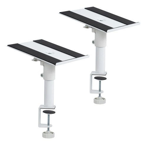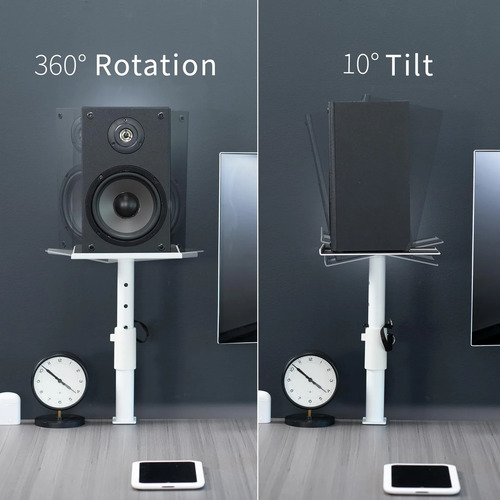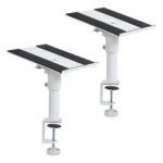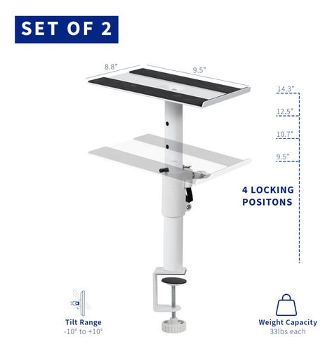 VIVO – Juego de soporte para altavoz con abrazadera, bandejas de 25.4 x 22.86 cm, ajuste de altura e inclinación, soportes de audio universales para computadora y altavoces de estantería, sonido