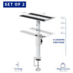 Abrazaderas en C resistentes: las abrazaderas de perfil bajo ahorran un valioso espacio de trabajo con un tamaño reducido y son compatibles con escritorios de hasta 2.5 pulgadas de grosor. Estos soportes soportan hasta 33 libras cada uno