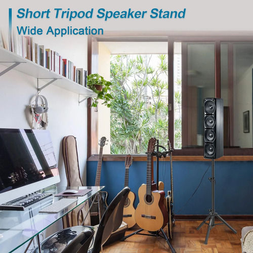 Se adapta a la mayoría de altavoces: el diámetro del tubo del telescopio es de 1.35 Los soportes de altavoz de trípode corto se adaptan a la mayoría de los altavoces modernos con un soporte para barra.