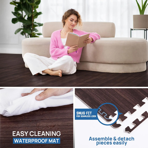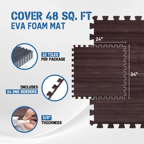 Tapete De Ejercicio Grueso 1 02 M² 12 Piezas Eva Color Mader Madera De Roble Oscuro – 48 Pies Cuadrados – 12 Piezas