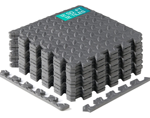 Tapete De Ejercicio Grueso Antideslizante 12 Pies Cuadrados Gris