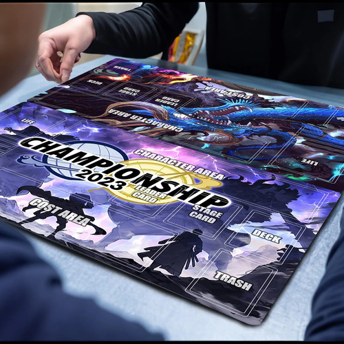 Esta alfombrilla es perfecta tanto para principiantes como para luchadores experimentados Con secciones especialmente diseƱadas para todas tus tarjetas, puedes organizar tu juego y concentrarte en la pelea.