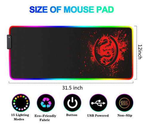 Fácil de usar: Este tapete de mouse es alimentado por USB, plug and play. Pulsa el botón para cambiar y seleccionar el modo de color de iluminación, es cómodo de usar.