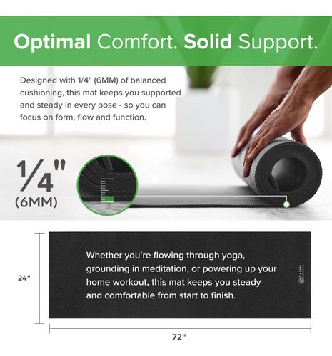 Gaiam Essentials – Tapete de yoga de alta calidad con soporte para esterilla de yoga (72 pulgadas de largo x 24 pulgadas de ancho x 1/4 pulgadas de grosor)