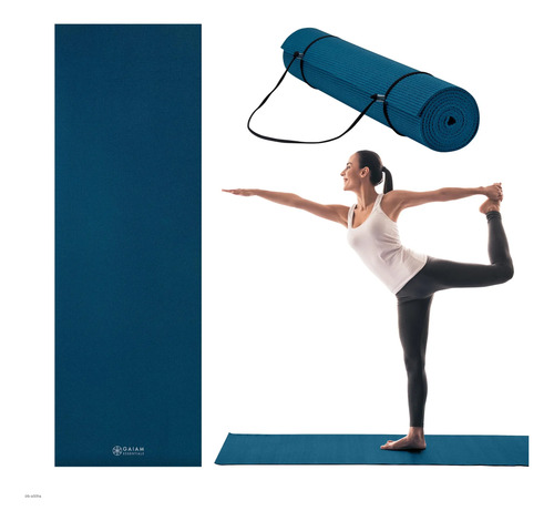 Estilo : Gaiam Essentials – Alfombrilla de yoga y pilates, de 1/4 pulgadas de grosor (6 mm) con correa de transporte de fácil ajuste para entrenamiento físico y gimnasio