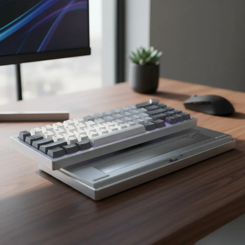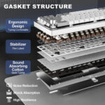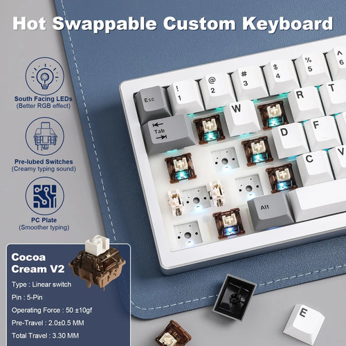 Teclado cremoso de montaje en junta: el teclado intercambiable en caliente cuenta con una estructura de montaje de junta que garantiza la amortiguación de vibraciones y la reducción del sonido, creando una escritura cómoda y delgada. Compatible con interruptores de 3 pines y 5 pines, este teclado viene con interruptores prelubricados y estabilizadores para un sonido cremoso satisfactorio. Cuenta con una placa de PC Flex-Cut y rellenos de sonido de 4 capas, perfecto para los entusiastas que buscan personalizar su teclado cremoso con componentes de alta calidad.
