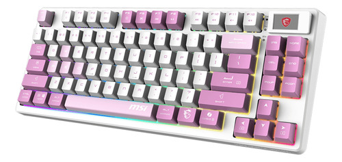 El MSI FORGE GK600 TKL WIRELESS VIOLET es un teclado tenkeyless versátil con modos inalámbricos de 2.4 GHz, Bluetooth y cableado. Cuenta con interruptores mecánicos lineales intercambiables en caliente, teclas PBT resistentes, juntas insonorizantes y una pantalla de 1.06 pulgadas. Con iluminación RGB y una batería de 4000 mAh, es ideal para gamers y creadores. Este teclado cuenta con un diseño sin teclado numérico que ahorra espacio en el escritorio y mejora la portabilidad sin sacrificar el rendimiento. Sus interruptores mecánicos lineales ofrecen pulsaciones suaves y precisas, ideales para juegos de ritmo rápido o escritura precisa. Compacto pero potente, está diseñado para quienes valoran la eficiencia y el estilo.