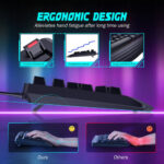 Reposuñecas ergonómico integrado, la altura adecuada permite que la muñeca se coloque cómodente en el teclado con cable y soporta la muñeca sin esfuerzo. El diseño científico de la tecla escaloda permite un fácil acceso de los dedos a todas las teclas, maximizando laodidad de la mano durante largas horas de juego o trabajo.