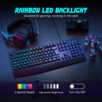 Teclado para juegos, retroiluminación LED arcoíris de 7 colores, 104 teclas, silencioso, reposamuñecas, silencioso, teclas multimedia antifantasma, teclado USB impermeable con cable para PC, Mac Xbox