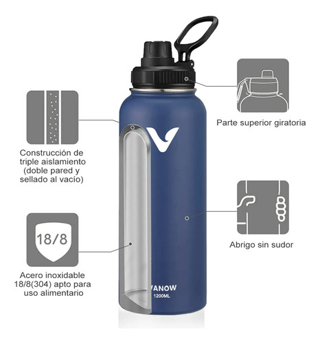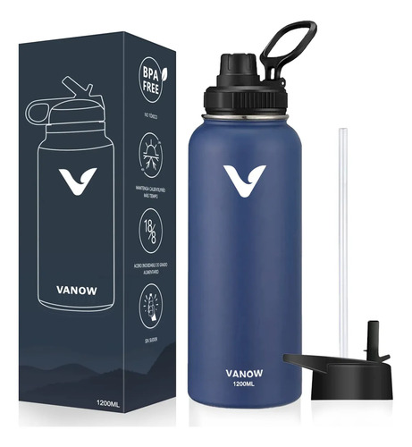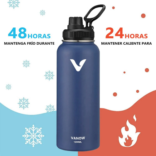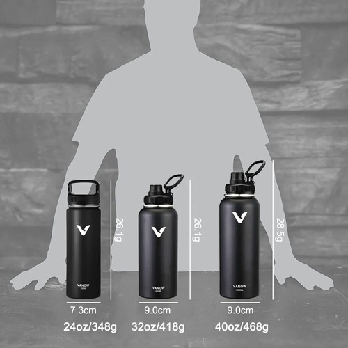 Aislamiento al vacíoEl termo VANOW mantiene las bebidas heladas durante 24 horas y calientes hasta 12 horas con doble pared y aislamiento al vacío. Esta botella de agua de acero inoxidable sin BPA no transfiere sabores, no suda y no se oxida.