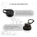 Chug and Straw TapasEsta botella de agua viene con 2 tapas una innovadora tapa Chug a prueba de fugas y una tapa de pajita recientemente mejorada que se ha mejorado para un mejor flujo. Ambos permiten beber fácilmente con una sola mano o con las manos libres.