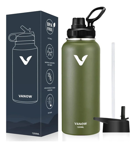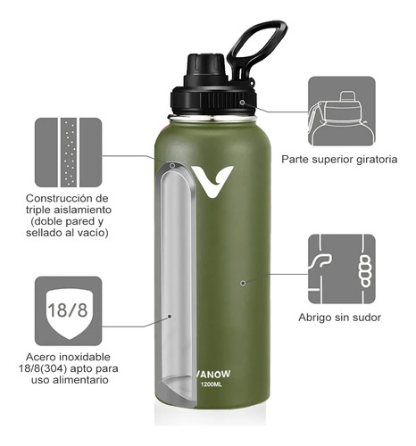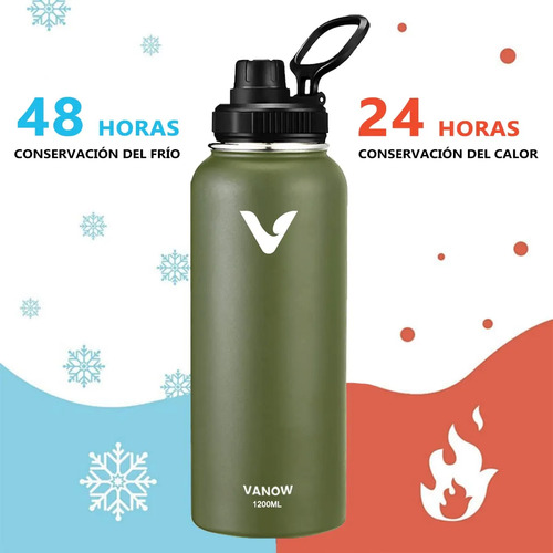 Aislamiento al vacíoEl termo VANOW mantiene las bebidas heladas durante 24 horas y calientes hasta 12 horas con doble pared y aislamiento al vacío. Esta botella de agua de acero inoxidable sin BPA no transfiere sabores, no suda y no se oxida.