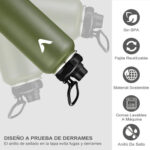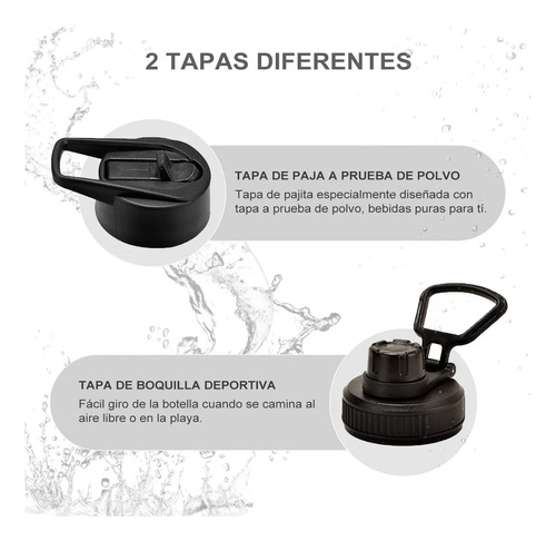 Chug and Straw TapasEsta botella de agua viene con 2 tapas una innovadora tapa Chug a prueba de fugas y una tapa de pajita recientemente mejorada que se ha mejorado para un mejor flujo. Ambos permiten beber fácilmente con una sola mano o con las manos libres.