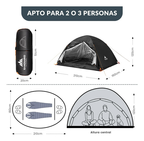 Sé el primero en valorar “Tienda De Campaña Grande Para 2 Personas Color Negro Doble C Negro”