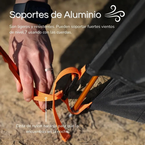 Tela impermeable: la tienda exterior está hecha de tela de alta impermeabilidad de 190Tpu3000MM y la parte inferior es de tela de alta impermeabilidad de 210Tpu3000MM.