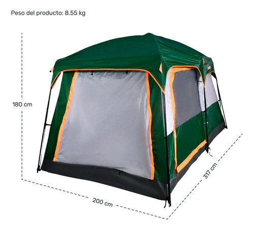 DISEÑO AMPLIO Y FUNCIONAL: Con medidas de 317 x 200 x 180 cm, esta tienda tiene espacio suficiente para 6 personas, ideal para familias o grupos. La pared divisoria interna de 150 x 200 cm permite crear dos espacios separados para mayor comodidad.