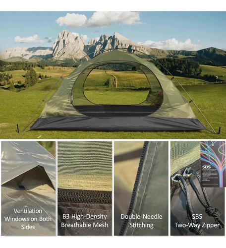 Ventana de malla y diseño de convección: la gran sección de malla y 2 puertas grandes con cremalleras dobles SBS proporcionan una ventilación mucho mejor, lo que puede mejorar el flujo de aire y el paisaje abierto, con una buena circulación de aire, no te sentirás tapado en el interior, la red interior de gasa te protegerá de mordidas en verano. El interior de la tienda de senderismo tiene un gancho de luz de camping para colgar una linterna y un bolsillo de malla para almacenar tus accesorios de camping o teléfono celular