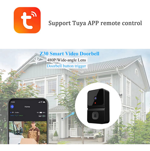 Timbre Wifi con CamaraAdmite WiFi 2.4G y conexión de aplicación, alta resolución 480P y lente gran angular para garantizar videos e imágenes claros y estables y ofrecer más detalles para usted.