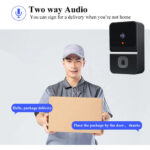 Conversación BidireccionalUna vez que alguien presione el timbre, la cámara enviará una notificación a su teléfono inmediatamente. El micrófono incorporado del timbre, para que pueda ver y hablar con sus visitantes en su hogar de manera segura.