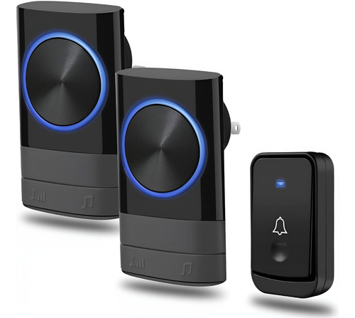 Timbre Inalámbrico Impermeable para Puerta, 1 Transmisor y 2 Receptor, 200 Metros de Alcance con 45 Melodías, 4 Niveles de Volumen, LED Indicador, para Casa Oficinas Hoteles