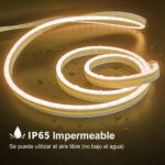 Tira LED de Neon Suave Esta tira de luces LED de neón tiene una cubierta de silicona gruesa y flexible alrededor. Y la chaqueta también funciona como un difusor de luz que hace que la luz sea más consistente. No se puede ver ningún punto de luz incluso a distancia cercana. Esta tira de luces LED de neón funciona con corriente directa de 12 V que hace que sea de bajo calor. Por lo tanto, es táctil para niños y adultos.
