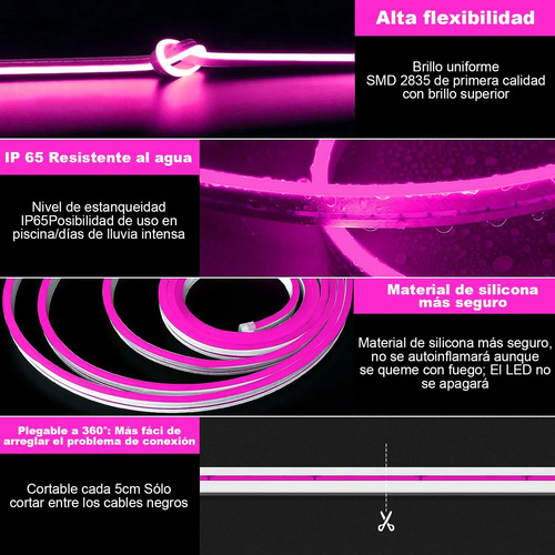 Tira de Luces de Neón LED Impermeable IP65 : Fabricada con tecnología IP65, resistente al agua y se puede utilizar en piscinas/días de lluvia intensa. Construcción de silicona duradera, resistente a la intemperie y al calor. Material de silicona más seguro, no se encenderá espontáneamente en caso de incendio el luz LED no desaparecerá. (Nota: el adaptador no es resistente al agua)
