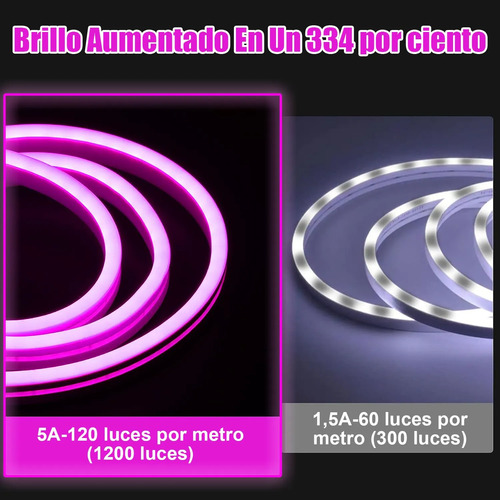 Tira de LED de Alta Reproducción Cromática : La tira de LED de neón de 10m incluye 1200 LED súper brillantes. Voltaje de funcionamiento de 24V. El LED mejorado y el diseño de brillo lateral hacen que la tira de luces LED sea más brillante que otras tiras de luz, el rango de proyección de 120 grados proporciona una gran cobertura de iluminación y la luz en la tira de luz es muy uniforme.