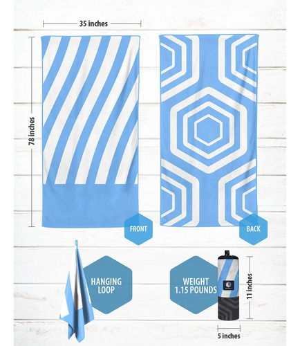Diseñado para durar toda una vida de excursiones: Esta toalla de playa ligera está hecha de microfibra de alta calidad y diseñada para soportar la el paso del tiempo. Costuras reforzadas que evitan roturas y desgarros y hacen de esta la toalla de baño de microfibra ideal.