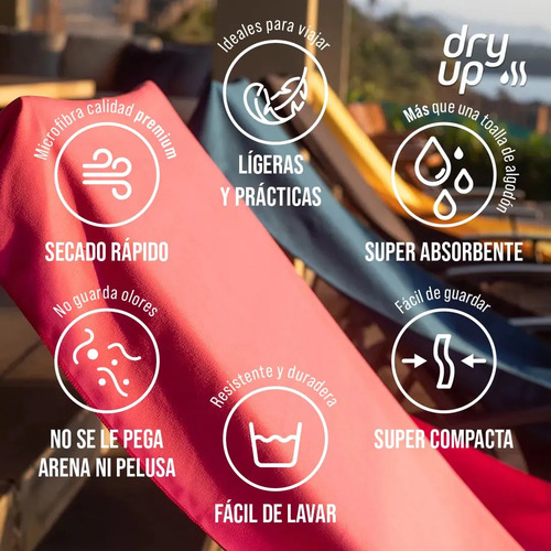 Hasta 3 veces más ligeras, 6 veces más compactas y secado 3 veces más rápido que una toalla de algodón. Absorben hasta 4 veces su peso en agua. Se puede exprimir y lavar a máquina.