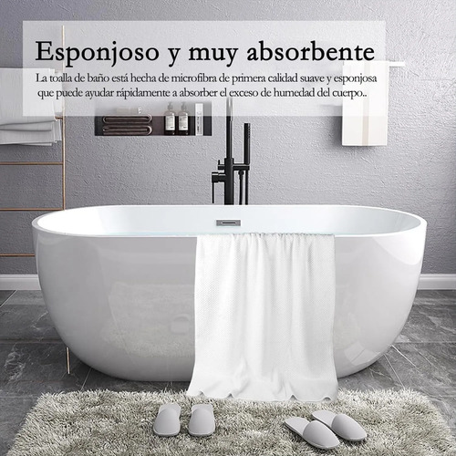 MaterialHecha de microfibra de alta calidad,esta toallas de baño microfibra es duradera, libre de productos químicos nocivos y extremadamente suave y transpirable para el uso diario. Disfrute del lujo de envolverse en una toalla, secarse las manos o limpiarse la cara con una toalla después de la ducha.