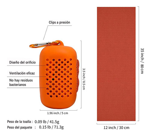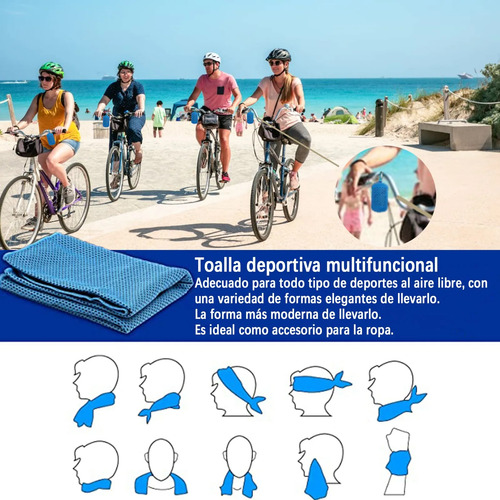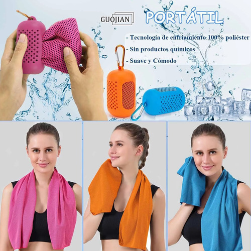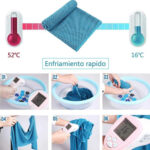 Enfriamiento instantáneo: añade un poco de agua a la toalla, agítala y se enfriará en sólo 3 segundos. La toalla se mantiene fresca hasta 3 horas (dependiendo de las condiciones).