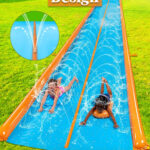 Sloosh – Tobogán acuático de doble carril, 25 pies x 6 pies, antideslizante y tobogán con aspersor y 2 tablas inflables para adultos, niños, fiestas, verano, patio, actividades de juego al aire última