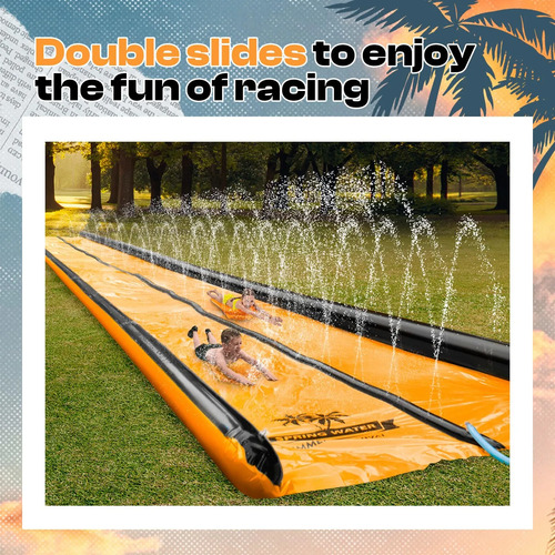 Toboganes dobles para niños y adultos: deslizamiento y tobogán de agua para niños en el patio trasero tiene dos toboganes, lo que permite carreras simultáneas, añadiendo diversión competitiva El tobogán acuático viene con dos bodyboards para un deslizamiento suave, asegurando seguridad y diversión para niños y adultos