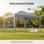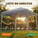FÁCIL Y RÁPIDO MONTAJE: Esta carpa para exteriores es muy fácil de armar. Se recomienda hacerlo entre dos personas para mayor facilidad. No se necesitan herramientas adicionales, solo mantener estable la estructura al unir los tubos de acero y colocar la cubierta. Perfecta para montajes rápidos en eventos.