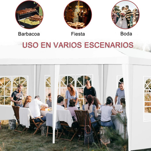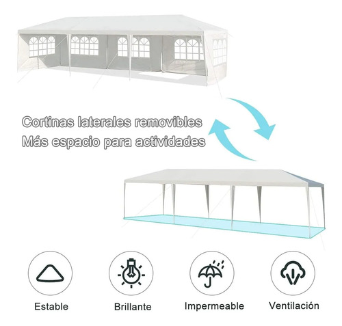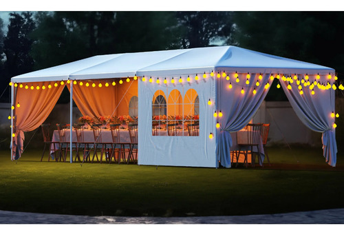 3×9 Carpa Con ParedesEste toldo de 3×9 metros ofrece mucho espacio y es perfecto para todas las actividades al aire libre.Puedes instalarlo en tu jardín para comidas compartidas o colocarlo como toldo sobre tu piscina para disfrutar nadando sin el resplandor del sol.