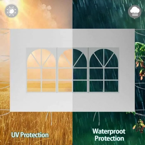 Resistente a la Lluvia y a Los Rayos UV La cubierta de poliéster duradera, impermeable y resistente a desgarros bloquea la mayoría de los rayos dañinos y reduce el calor, lo que la hace impermeable y protectora del sol. 4 partes laterales brindan protección contra el sol, la lluvia y el viento.