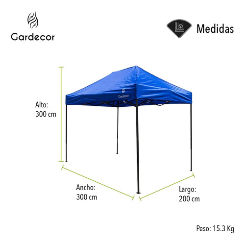 Toldo Tipo Carpa Plegable 2m x 3m Color Azul Exteriores Campismo Impermeable Protección contra Rayos UV 3m de Altura Lona Oxford Alta Calidad de PVC Fácil de Montar