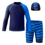 Sé el primero en valorar “Traje De Baño Para Niños 3 Piezas Manga Larga Secado Rápido Rayas-azul Diseño De La Tela 14(7-8y)”