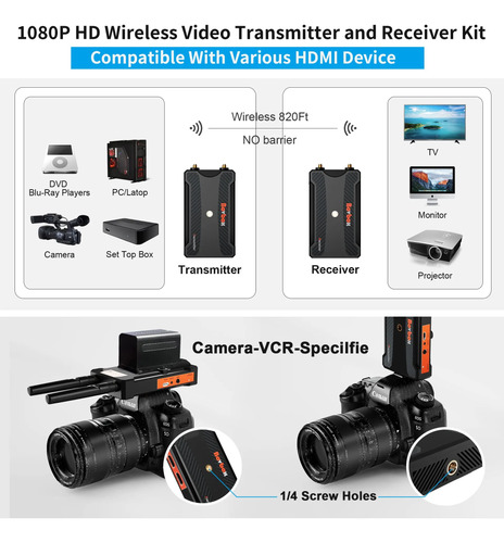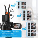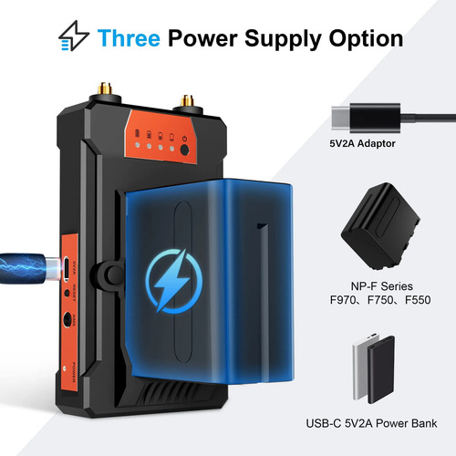 Múltiples opciones de alimentación y espejo de visualización: este transmisor y receptor se pueden alimentar de varias maneras, incluyendo batería de la serie NP-F (Nota: las baterías NP-F no están incluidas) o a través de puertos USB-C. El indicador de luz baja de la batería garantiza que nunca te encontrarás sin jugo. Soporta hasta 1TX a 4RXS: 1 TX a 1 RX: 820FT 1 TX a 2 RX: 755FT 1 TX a 3 RX: 689FT 1 TX a 4 RX: 623FT (Nota: El rango de transmisión no barrera)