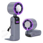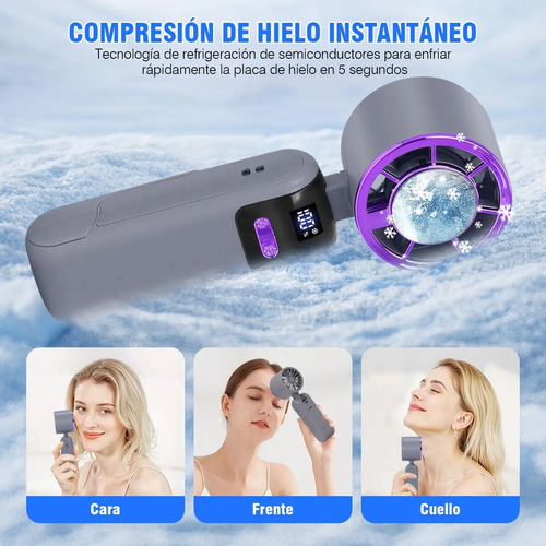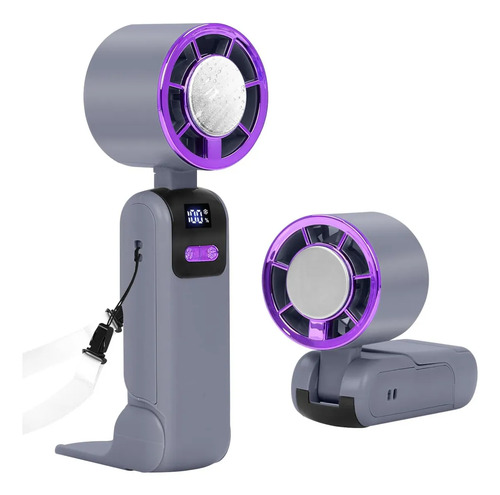 TRIXTER Ventilador de Mano Recargable con Enfriador de Hielo, Mini Ventilador Portátil de Cuello Refrigeración Aire Frío Turbo de 5 Velocidades con Pantalla LED para Camping, Viajes (MoradoGris)