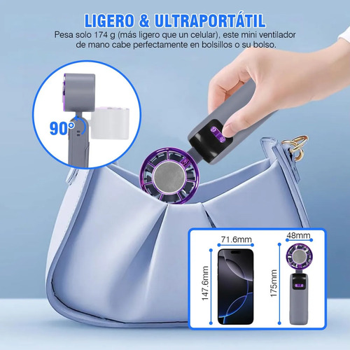 ALTA VELOCIDAD Y ENFRIAMIENTO EN SEGUNDOSEste ventilador de mano está equipado con un motor sin escobillas de hasta 15000 RPM para proporcionar un flujo aire de forma rápida y potente. La tecnología de enfriamiento instantáneo garantiza panel frío instantáneo a los pocos segundos de encender el ventilador de mano.