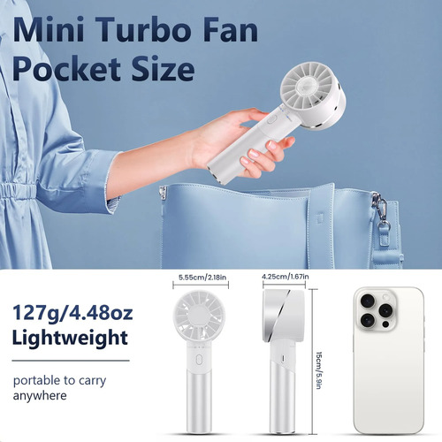 Diseño compacto y portátilEl tamaño del ventilador de mano es de 15055.542.5mm y pesa sólo 122 gramos, este mini ventilador de mano portátil es ligero y portátil, cabe fácilmente en su bolsillo o bolso. Manténgase fresco donde quiera que vaya con este ventilador de mano personal, por lo que es el compañero perfecto de viaje y al aire libre.