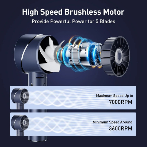 Potente flujo de aire, motor sin escobillasSentirá la fuerte brisa con este ventilador portátil de mano, equipado con tecnología avanzada de motor sin escobillas y una batería de 2600mAh. Mientras que los niveles de ruido tan bajo como 45 decibelios asegurar el ventilador de mano no molestar a su entorno. ventiladores portátiles de mano cambiar fácilmente entre los ajustes de 4 velocidades con la operación de un solo clic. (Nota: La luz roja indica que se está cargando, y la luz verde indica carga completa, mantenga pulsado durante 10 segundos para apagar el ventilador).
