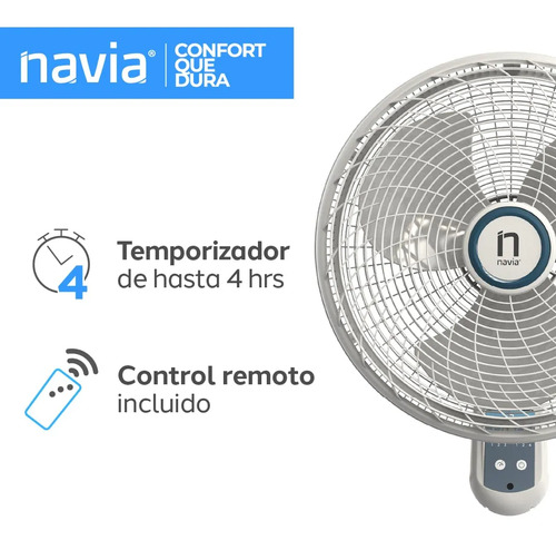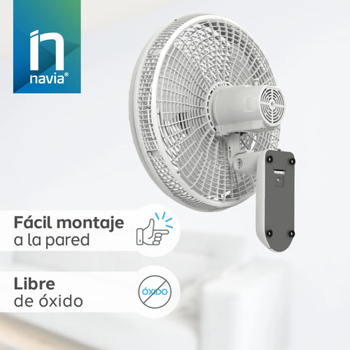 NAVIA Ventilador de Pared de 18 Pulgadas con Control Remoto CR018P | 3 Velocidades | Fácil montaje | Silencioso | Cabezal Inclibale y Oscilacion horizontal