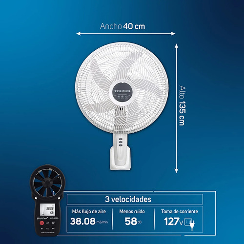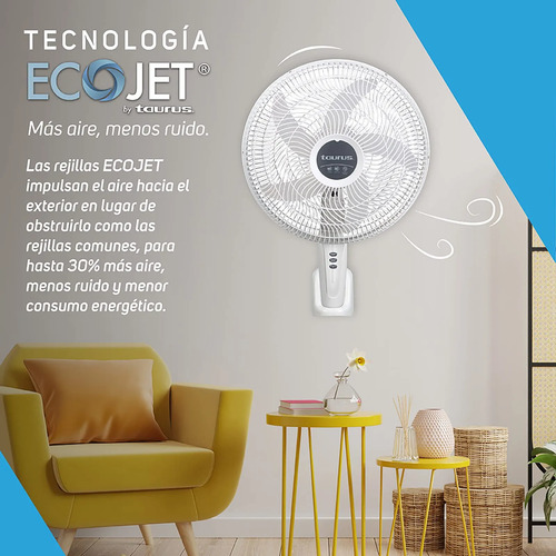 TAURUS BOLT| Ventilador con tecnología ECOJET| Ventilador de Pared| 3 velocidades| Reja plástica aerodinámica de 16 pulgadas| Fácil instalación