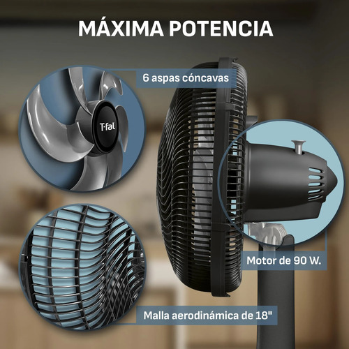 T-fal Ventilador de pedestal Silence Force de 18″ y 6 aspas con tecnología repelente. Ultra potente y silencioso, eficaz contra los mosquitos. 90 W de potencia, VE77A0X0